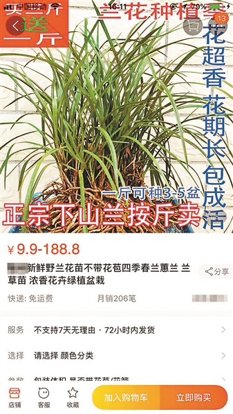 网店以“下山兰”指代野生兰花